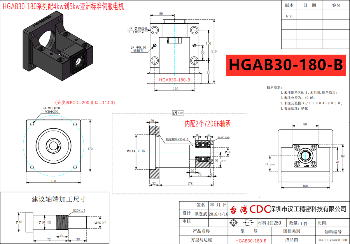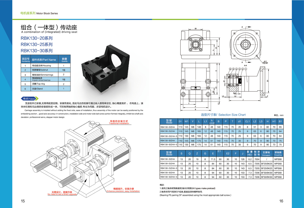 絲杠電機座設計尺寸精巧,并易于安裝,可以安裝在狹窄空間裡,由于軸承已適當預壓,毋需再加工處理即可組裝至設備,減少了組立的工時并提升了組立的精度。
