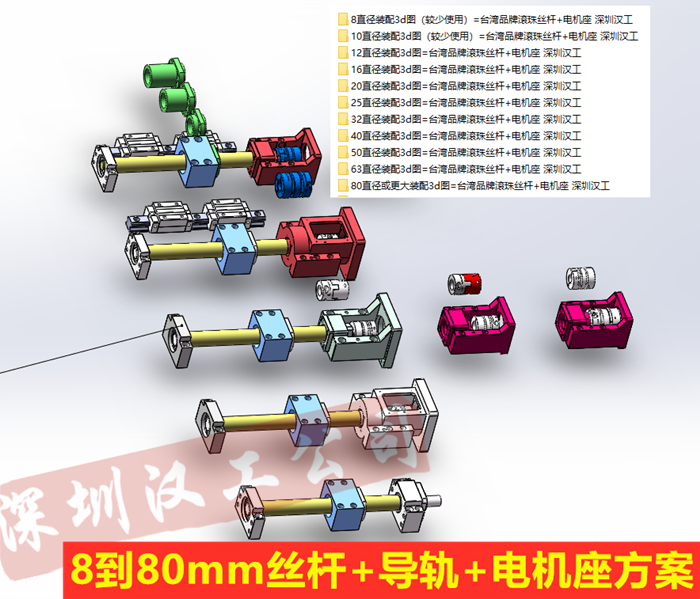 1、導軌滑塊、滾珠絲杠、絲桿電機座、直線模組等3d圖請聯(lián)系客服索取!